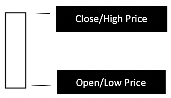 A White/Green candle signifies that the price moved up, during a specific time period.
