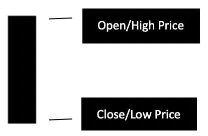 A Black/Red candle signifies that the price moved down, during a specific time period.