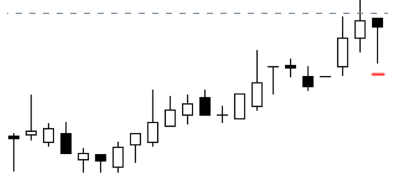 The above candle is the exact opposite. Let’s assume the seller opened his shop and has vegetables which are not fresh. The seller knows that if he doesn’t sell it today, he might have to throw it out tomorrow. Given this situation, let’s say he was optimistic of his sales and he sold his stock to the first customer at a price of 10. But the next customer who knows the state of the vegetables complains and get a good bargain at a price of 8.