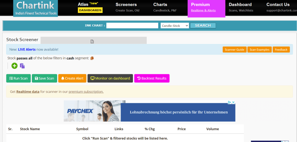 3 thoughts on “A tool to scan stocks: Chartink.com