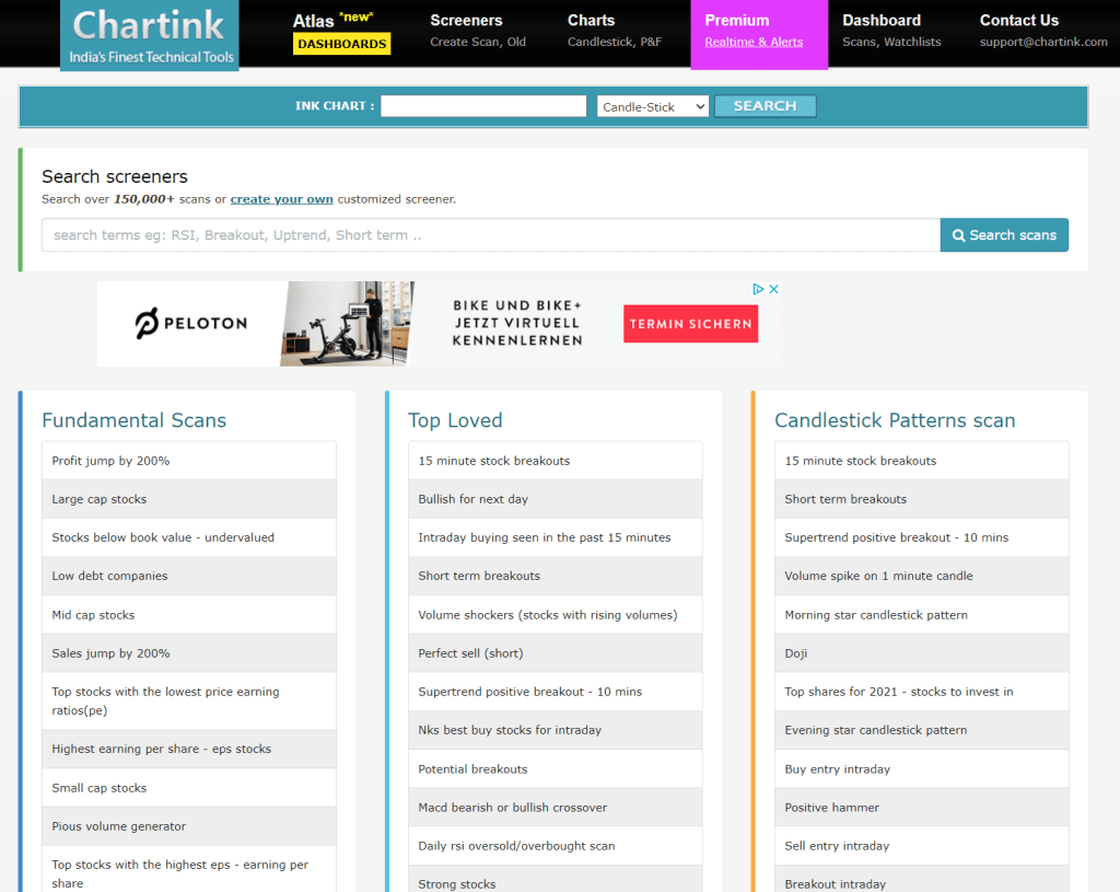 One such scanning tool that I found very easy to use is chartink.com. This is available in both free and premium versions. The free version should be good enough for us. I use it primarily for scanning based on technical conditions. However, you can also find a few fundamental parameters that you can set. For purely fundamental screening, I found screener.in to be the best and you can find more information on how to get started with it in my blogpost.